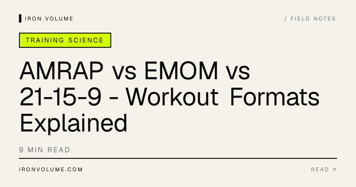 AMRAP, EMOM, 21-15-9, and Total Reps explained side by side. When to pick each format, how to pace it, and worked examples for every level.